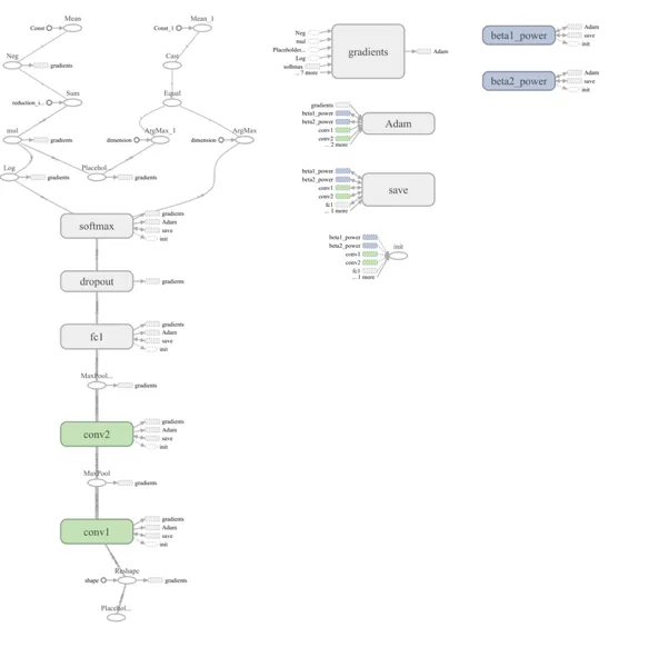 TensorBoard is arguably the most popular network visualization tool. A TensorFlow network graph looks like this: