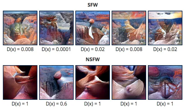 Speaking of what “what people have in their minds”, let’s focus on a stereotypical teenager’s vision (see some drawings by CollegeHumor). Here we go — a Generative Adversarial Network for creating images (a wonderful overview). But with one more knob — is a picture Safe Work Work or not.